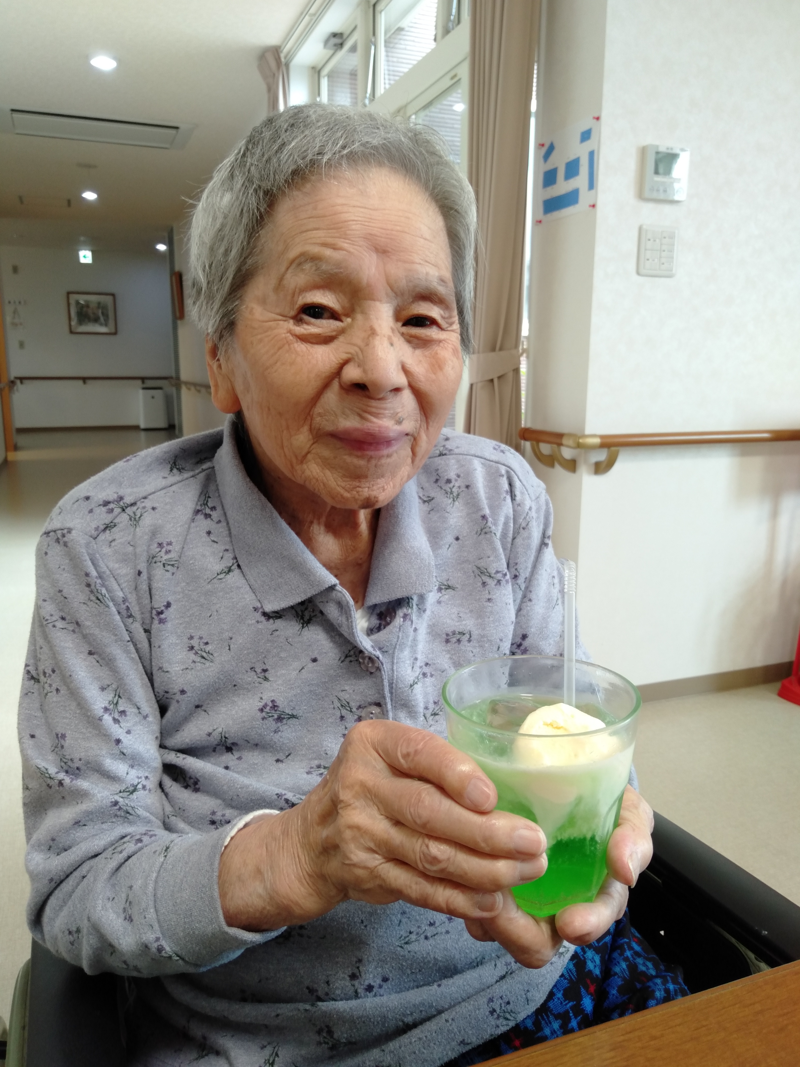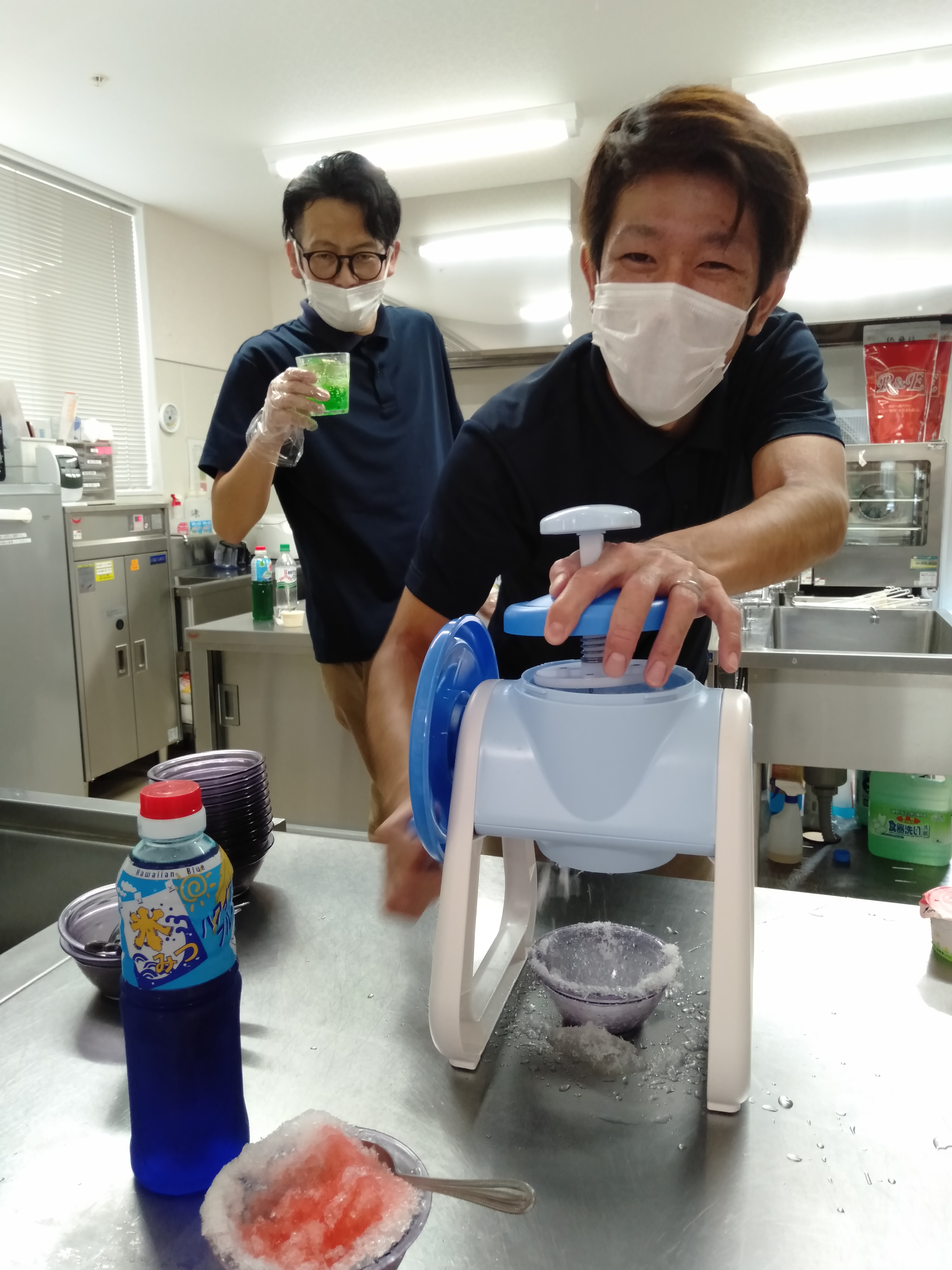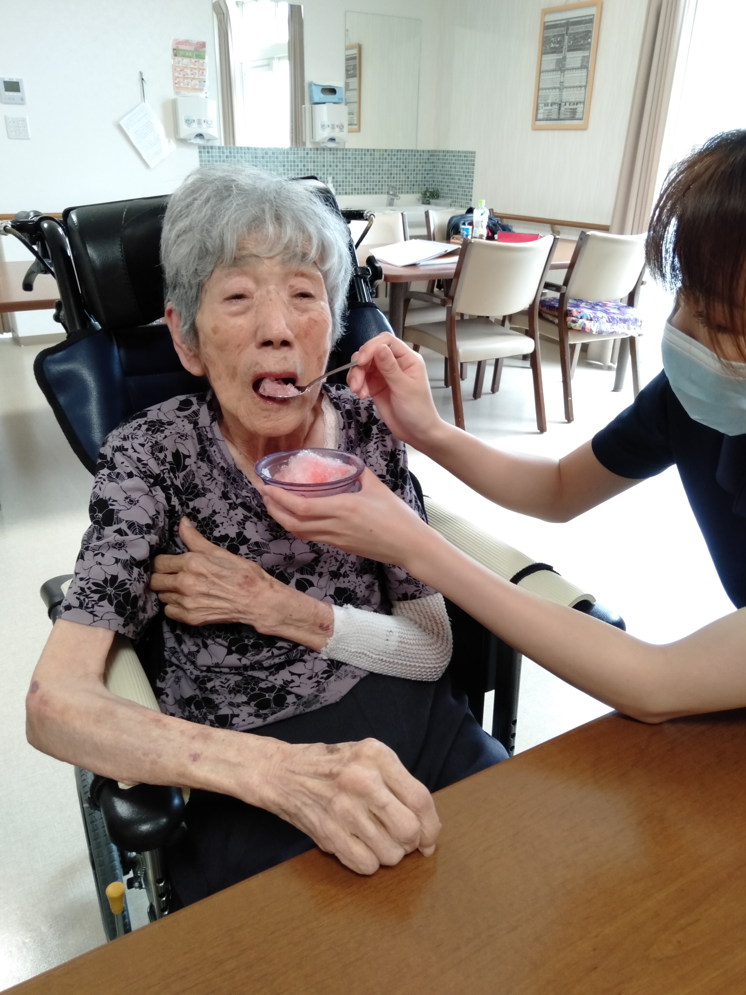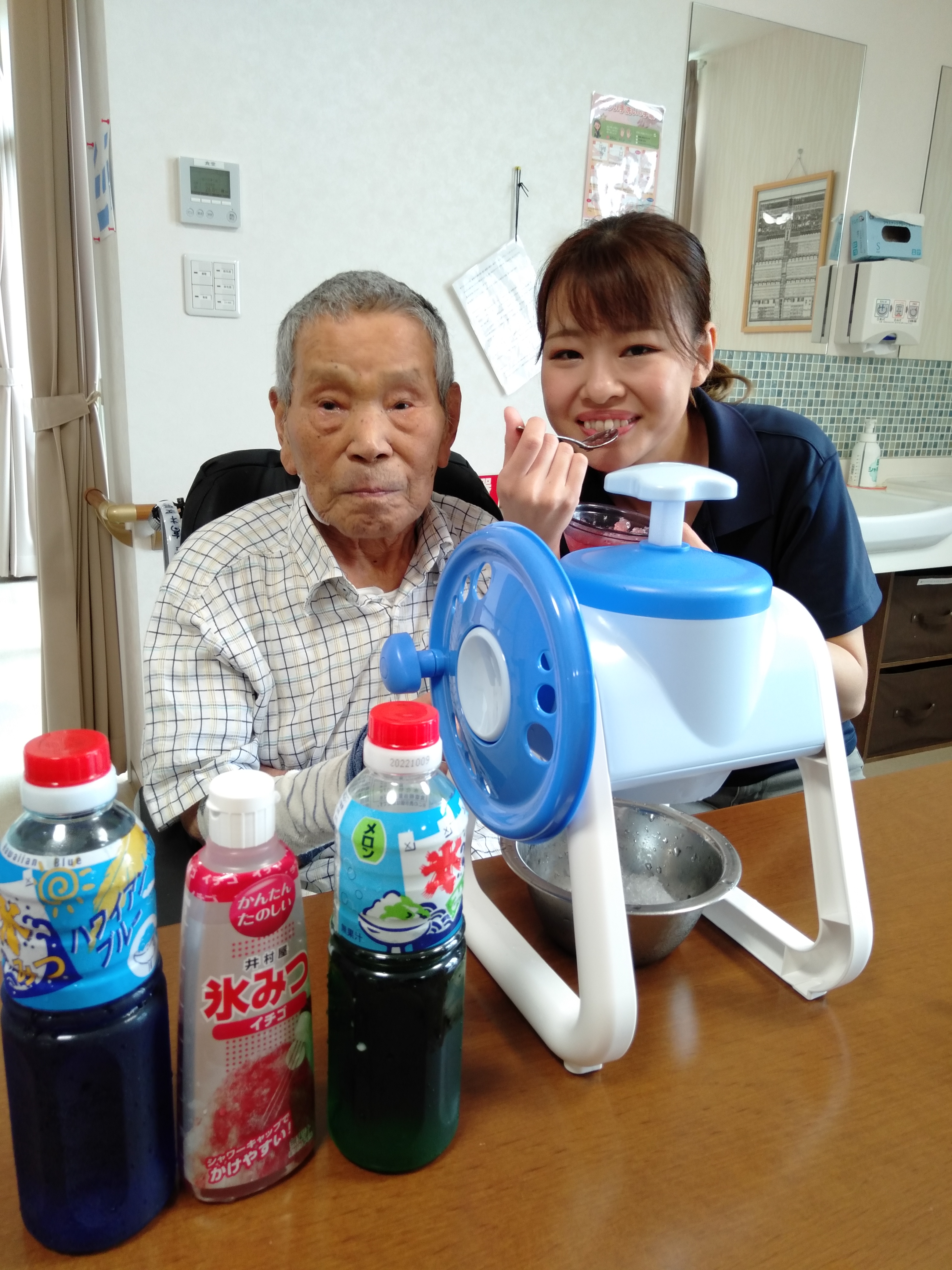 普段なかなか水分摂取のすすまないご利用者も、かき氷なら食べていただけるので暑い夏の日にはもってこい(^^)
