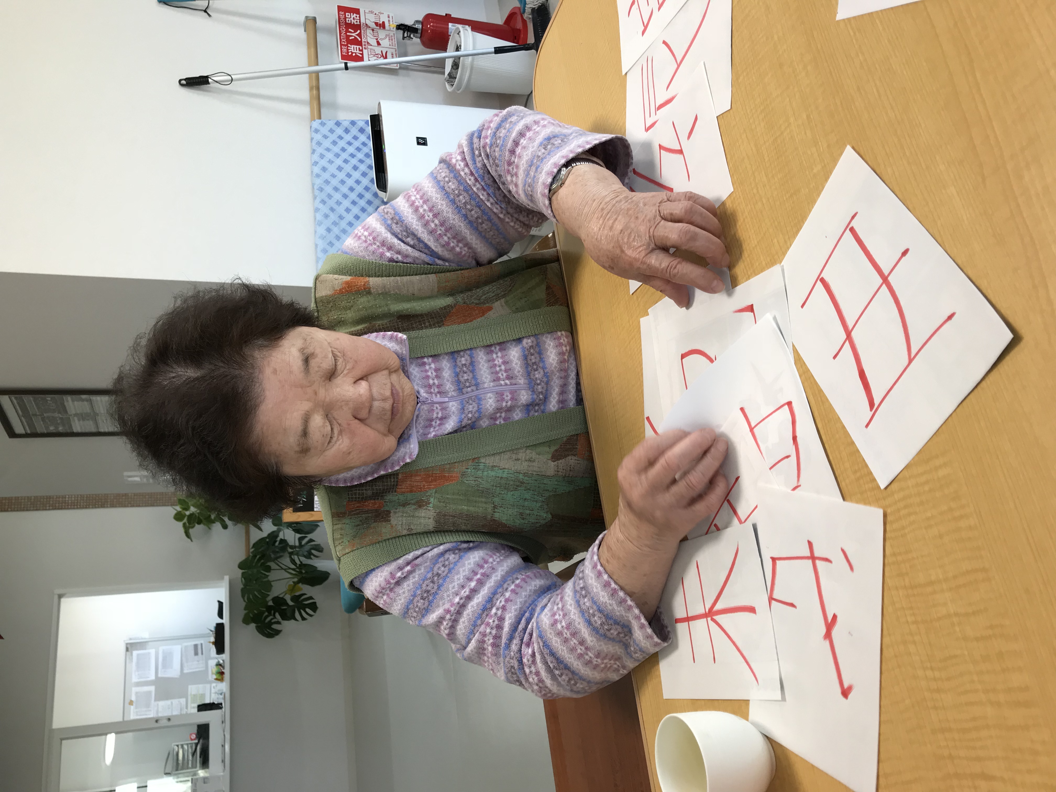 師走を迎え何かと慌ただしい時期となり、今年もいよいよ残りわずかですが、皆様いかがお過ごしでしょうか?寒気も厳しくなり、体調を崩されたりしていませんか? 本日はご利用者様と、十二支の干支を順番に覚えているか読み書きし、お互い意外と忘れていたりして、知恵を出し合い学習したり、のんびりとしたひと時を過ごしました。