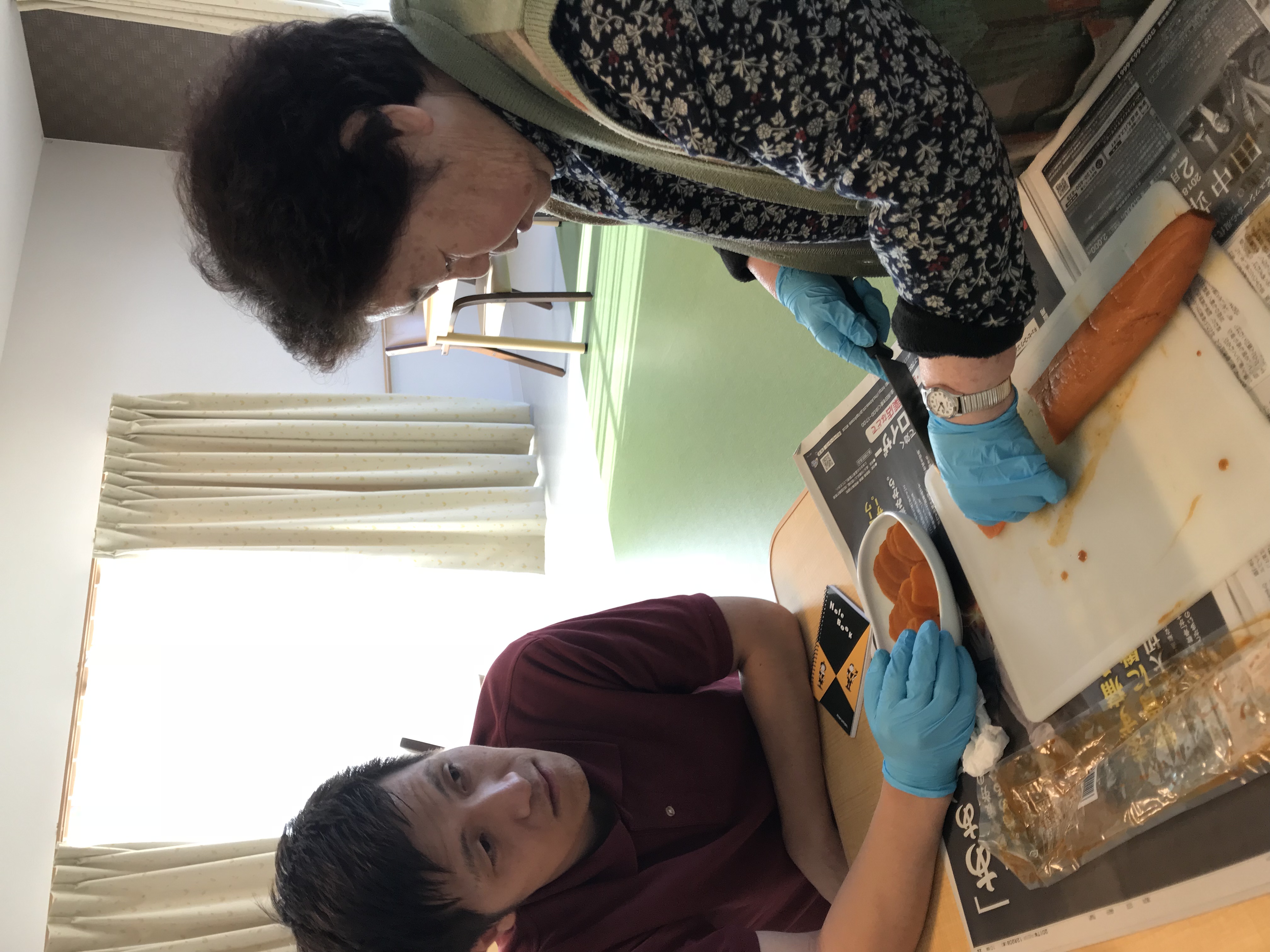 新年を迎え早いもので今日は1月3日、我が家に帰省されていた利用者様も、ちらほら帰苑されつつあり、本日は午後より初風呂にゆっくりと入った後の、のどかなひと時を過ごしました。お茶請けのたくわん漬けを利用者様が切って下さり、たくわんの味見をしながらネーミングを考える、爺ちゃん&婆ちゃん&孫の座談会がとても穏やかで、ほっこりする午後のひと時でした。