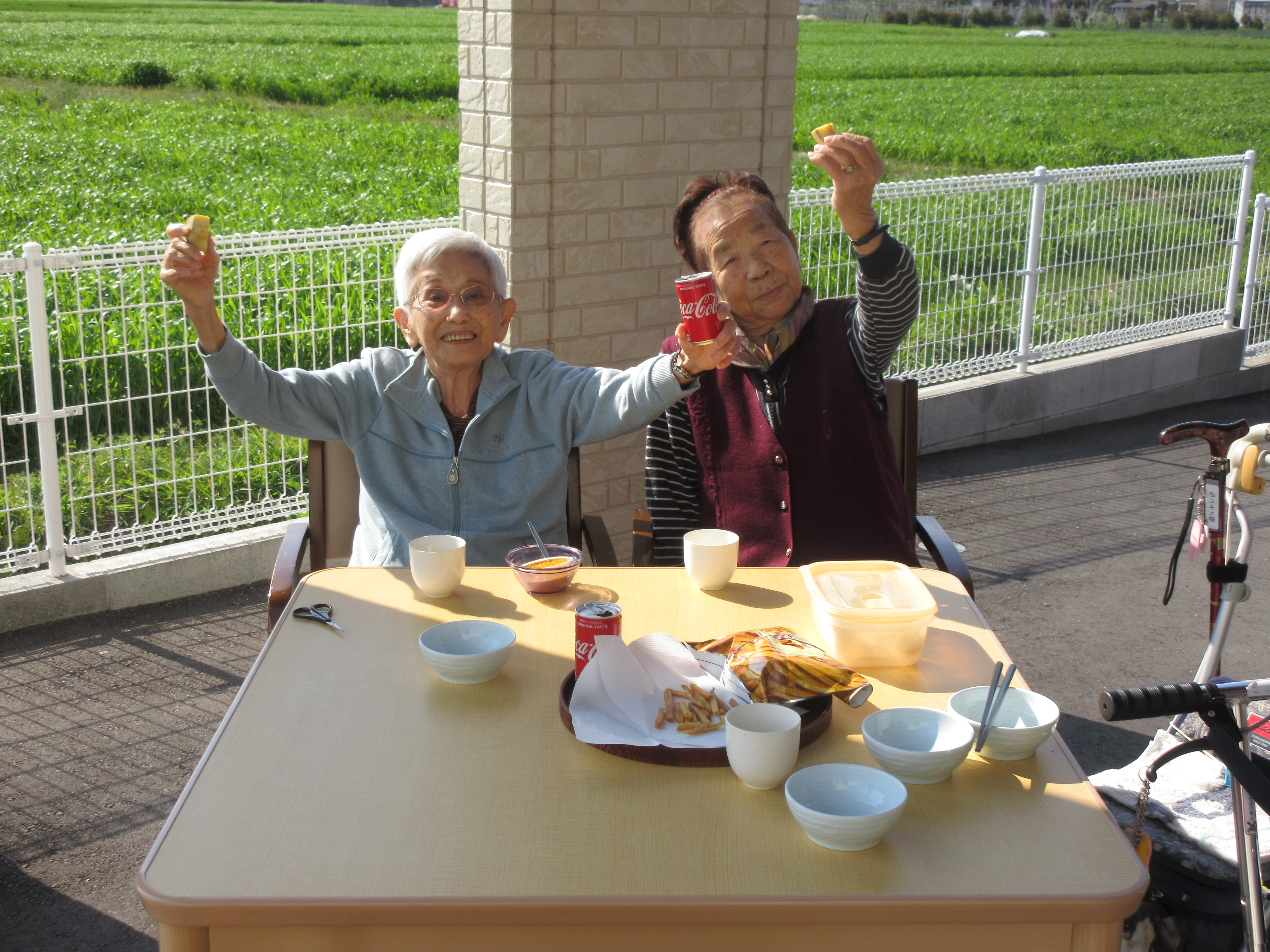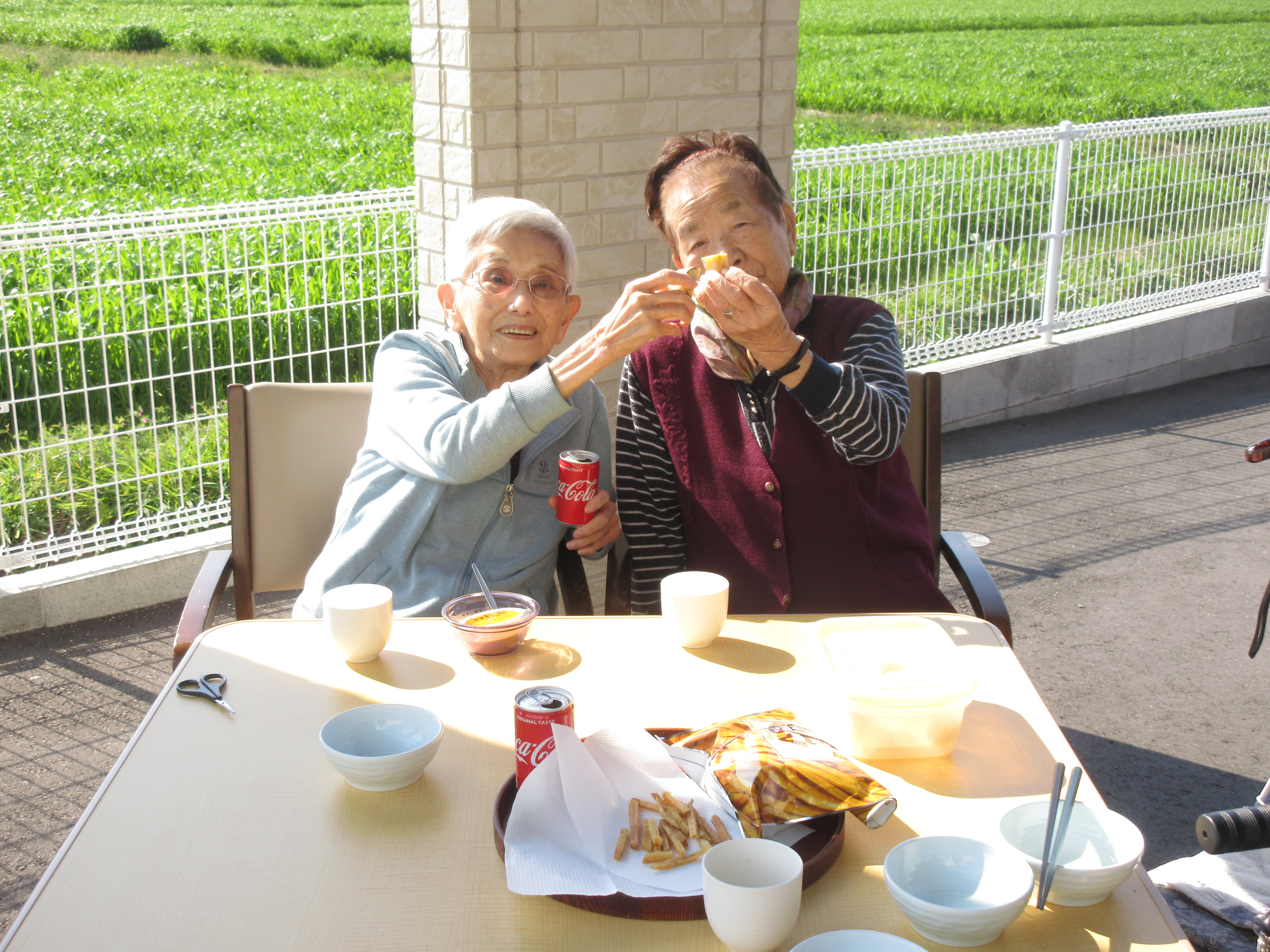 みんなで太陽のミネラルを感じてご家族の差し入れのお芋をいただきました。