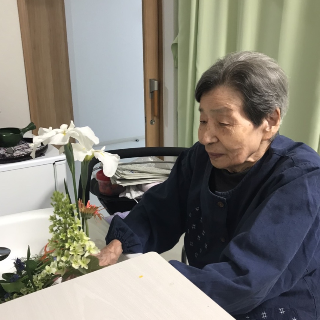 娘様のご自宅のお庭に咲いたお花を娘様がお母様に届けて下さり、そのお花をお母様が生けて、お部屋に飾っておられました。