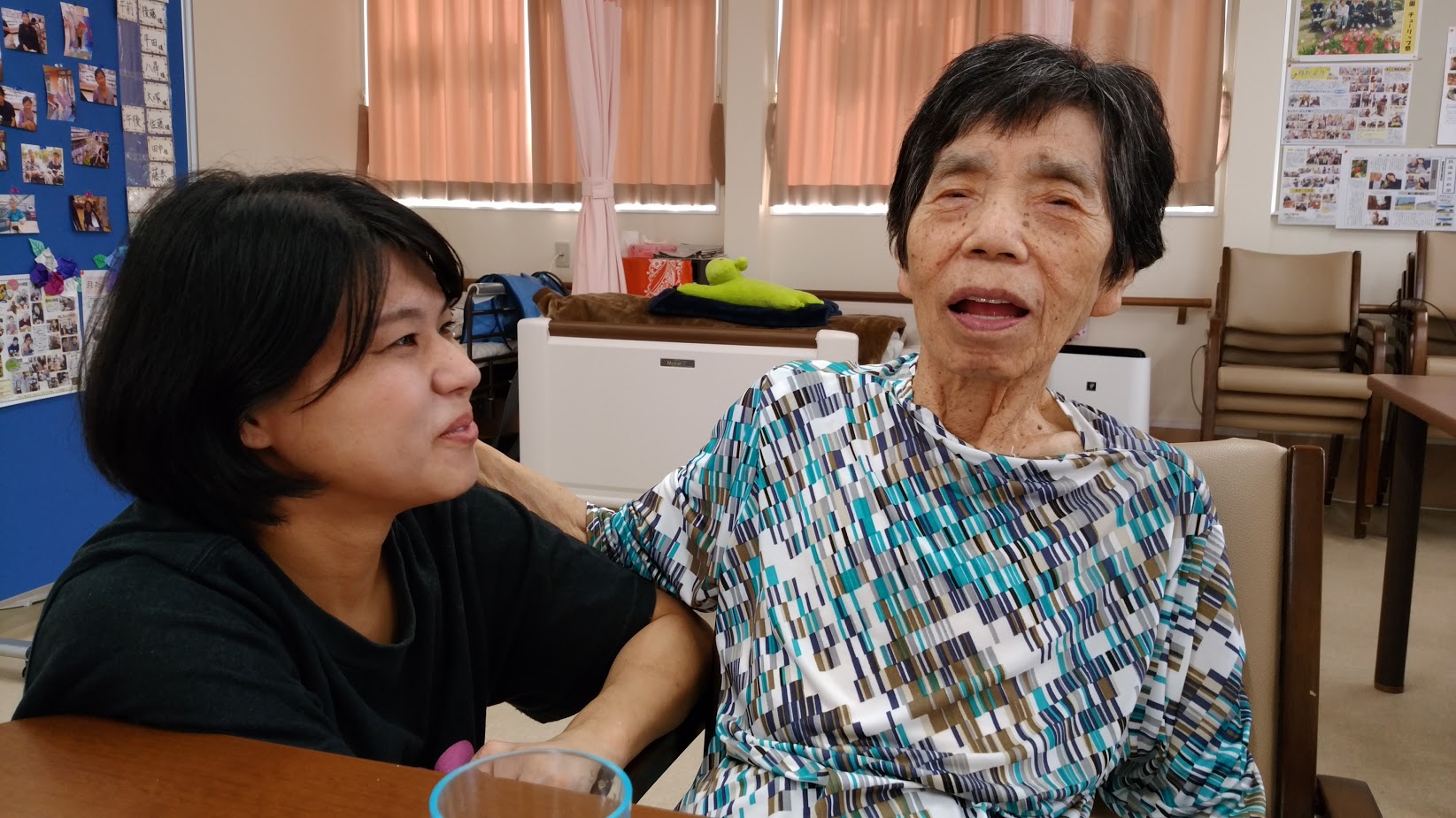 朝の、ちょっとした時間に、職員と小ネタでいじりあい。傍目には漫才にしか見えない…。ギャラリーは大笑いです♡ でも、こういう時間が大切なんだと思います。 「笑う」って、生きるうえですごく大切なことですからね😊 ・・・ととと。次の送迎便が到着しました! ご婦人ふたりの到着です✨