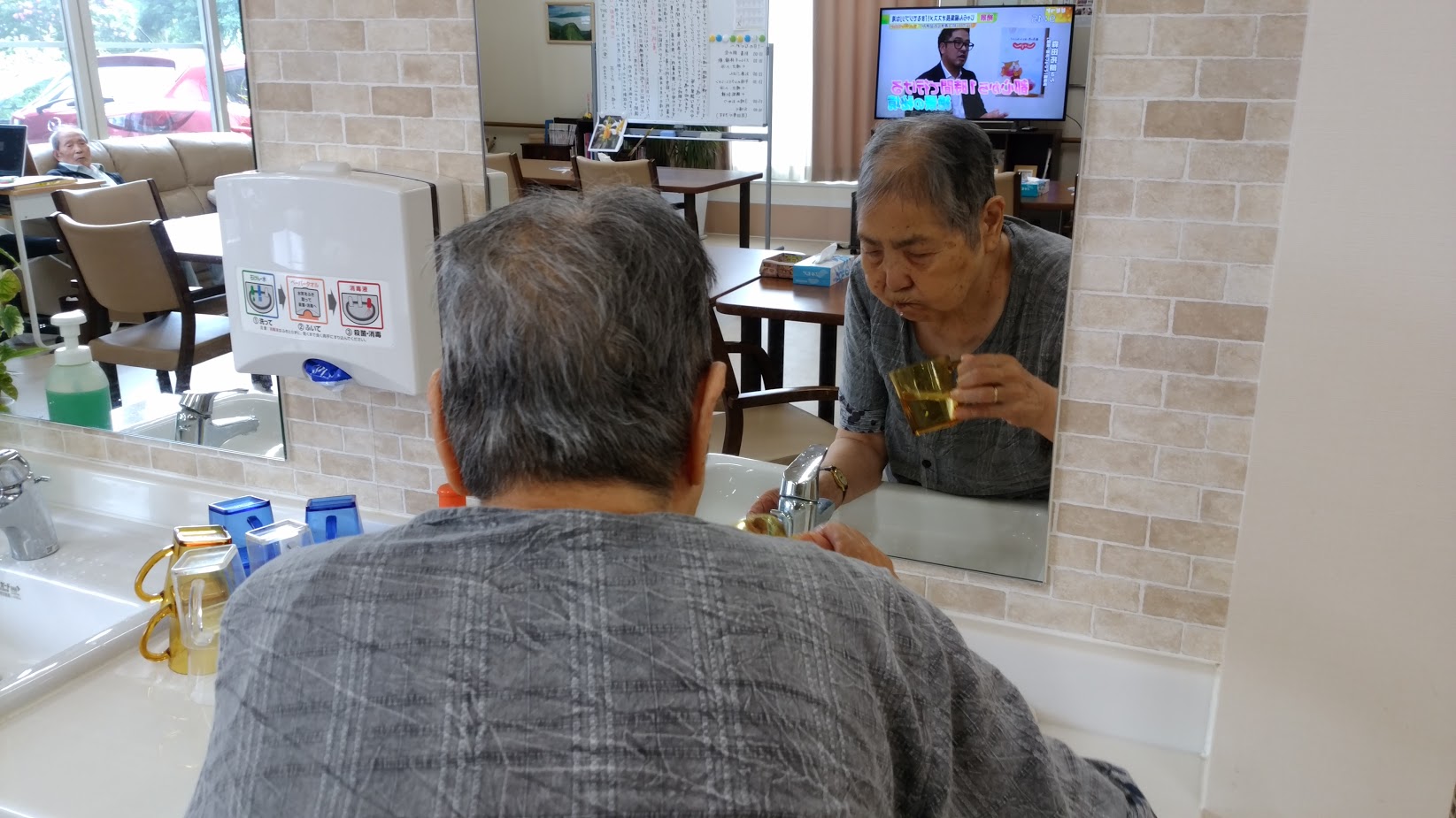 朝、こちらに来られましたら、まずは手洗いとうがいをしていただいています。 暑い季節、そろそろ風邪もひかなそうですけど、こちらは毎日の習慣ですので、いつもの風景です★