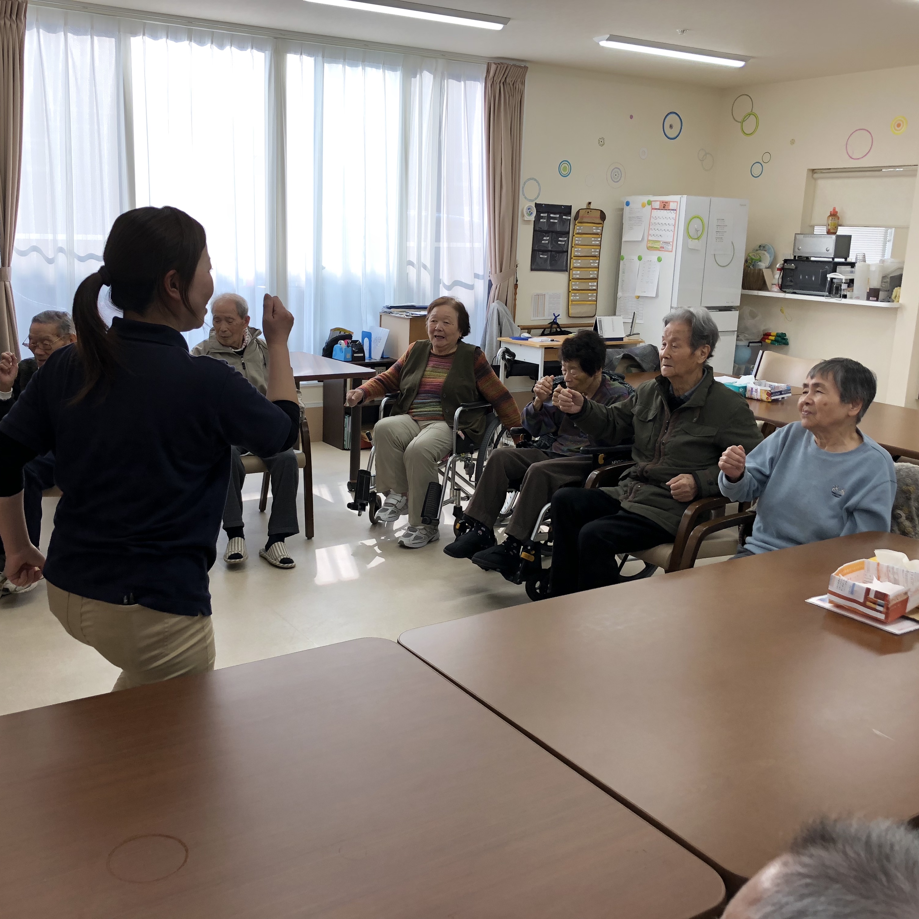 寒い日が続いていますが、こちらデイサービス公園通りでは、午前は歌に体操、午後はレクリエーションや機能訓練など、今週も利用者様に楽しんでいただきました。