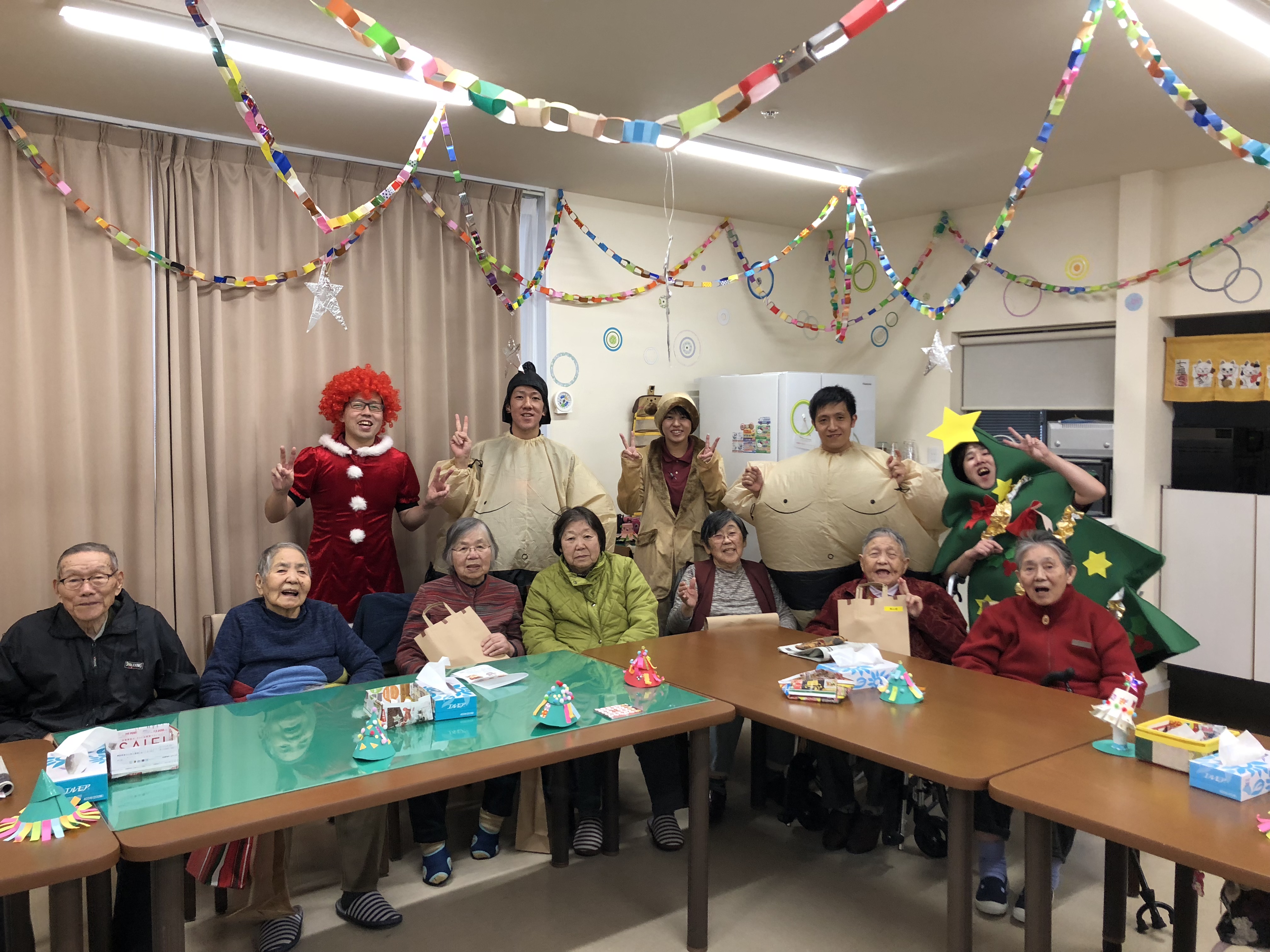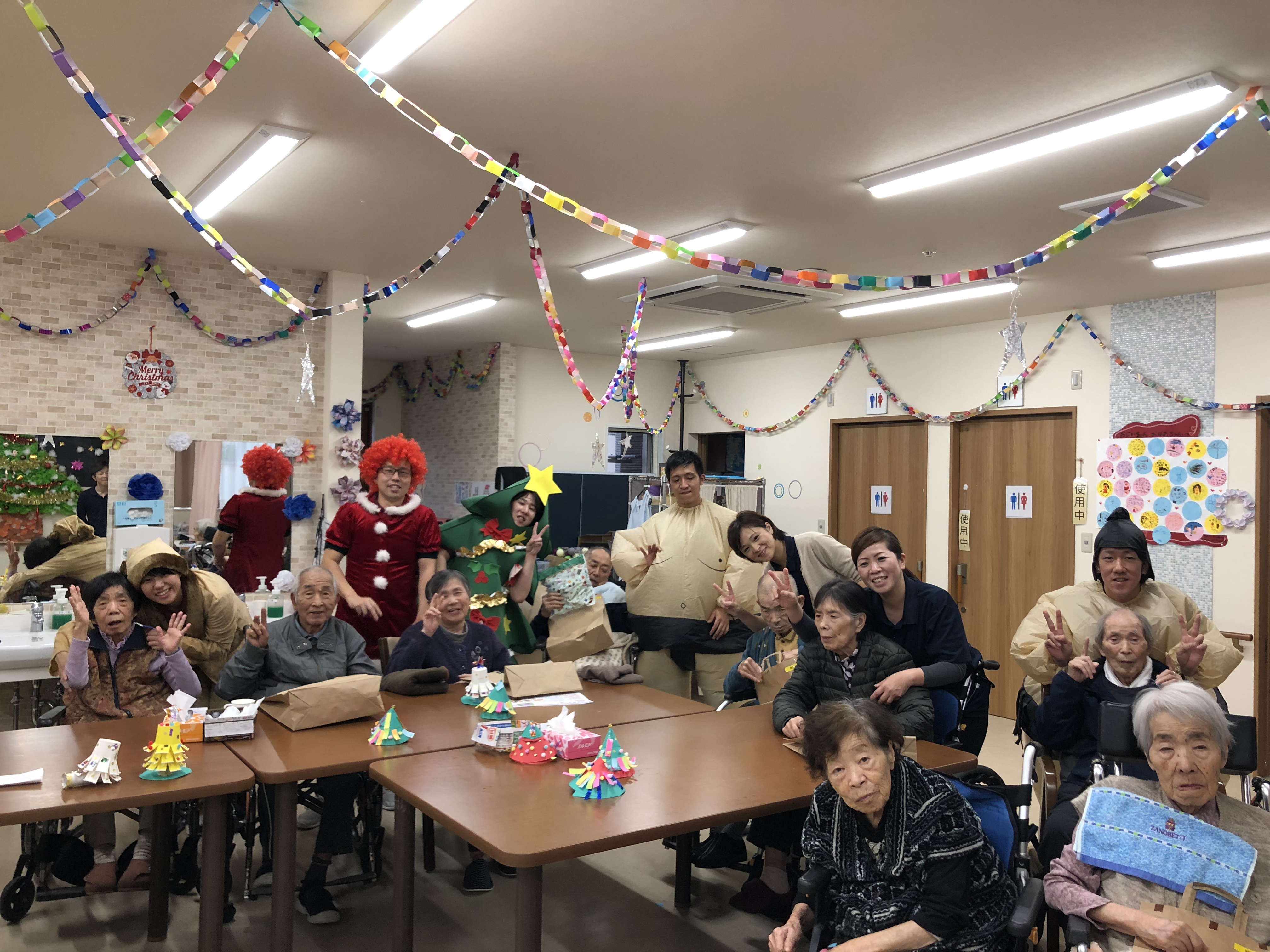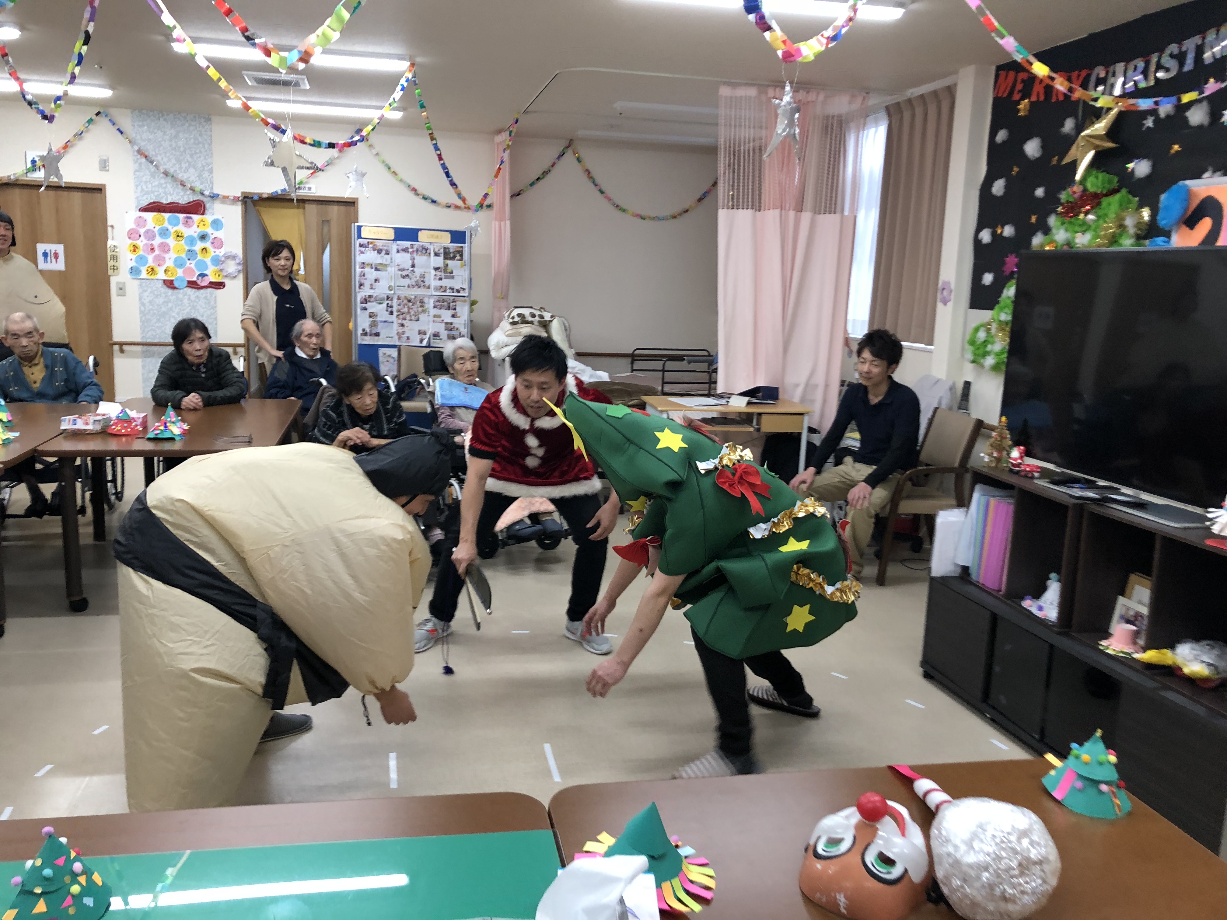 クリスマスということもあり、ツリーや、サンタも登場し、利用者様も職員も笑いが絶えませんでした!!