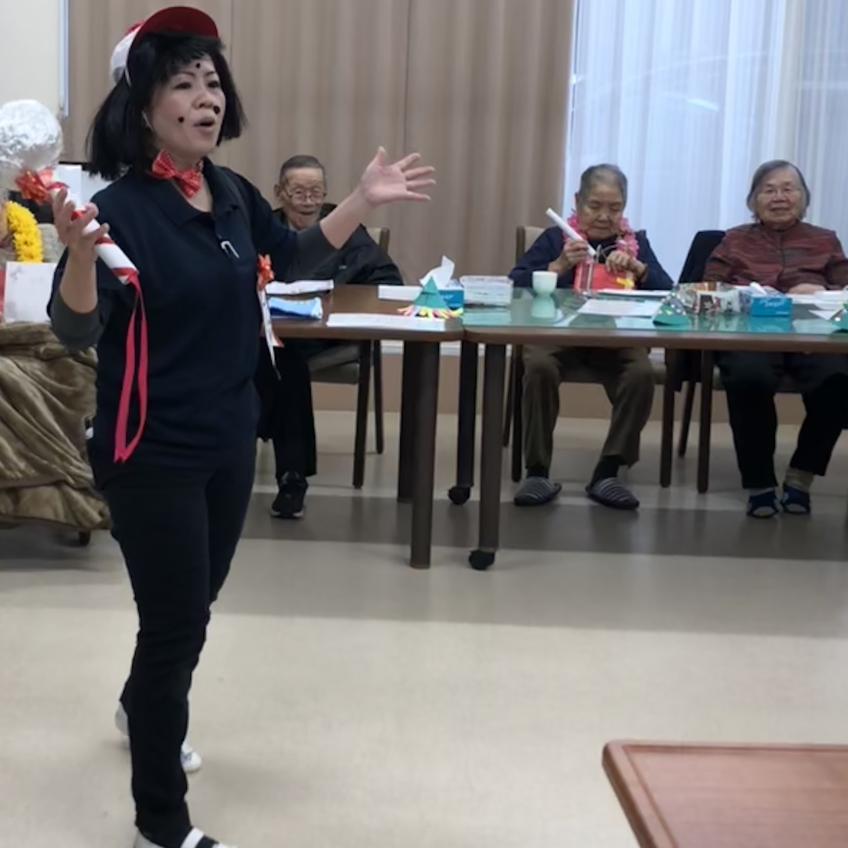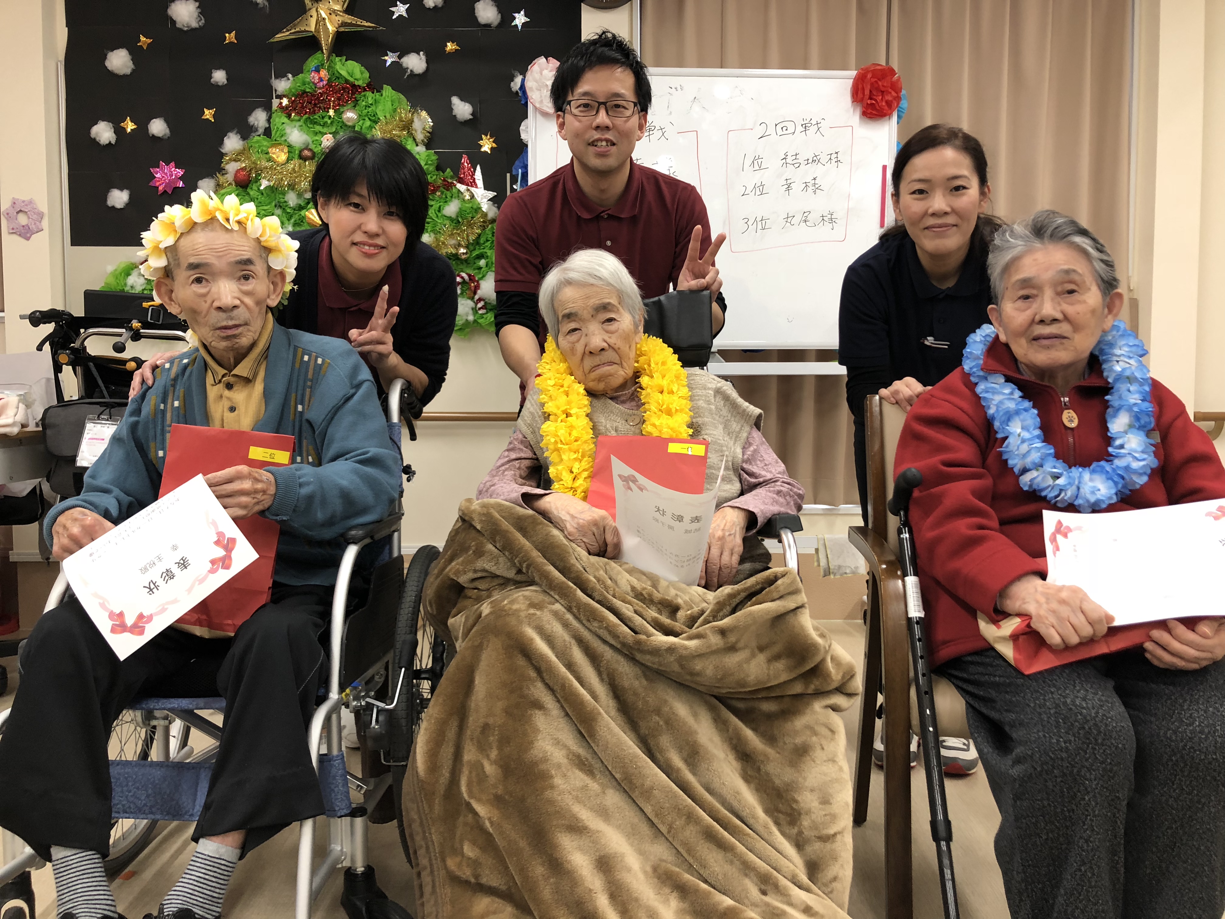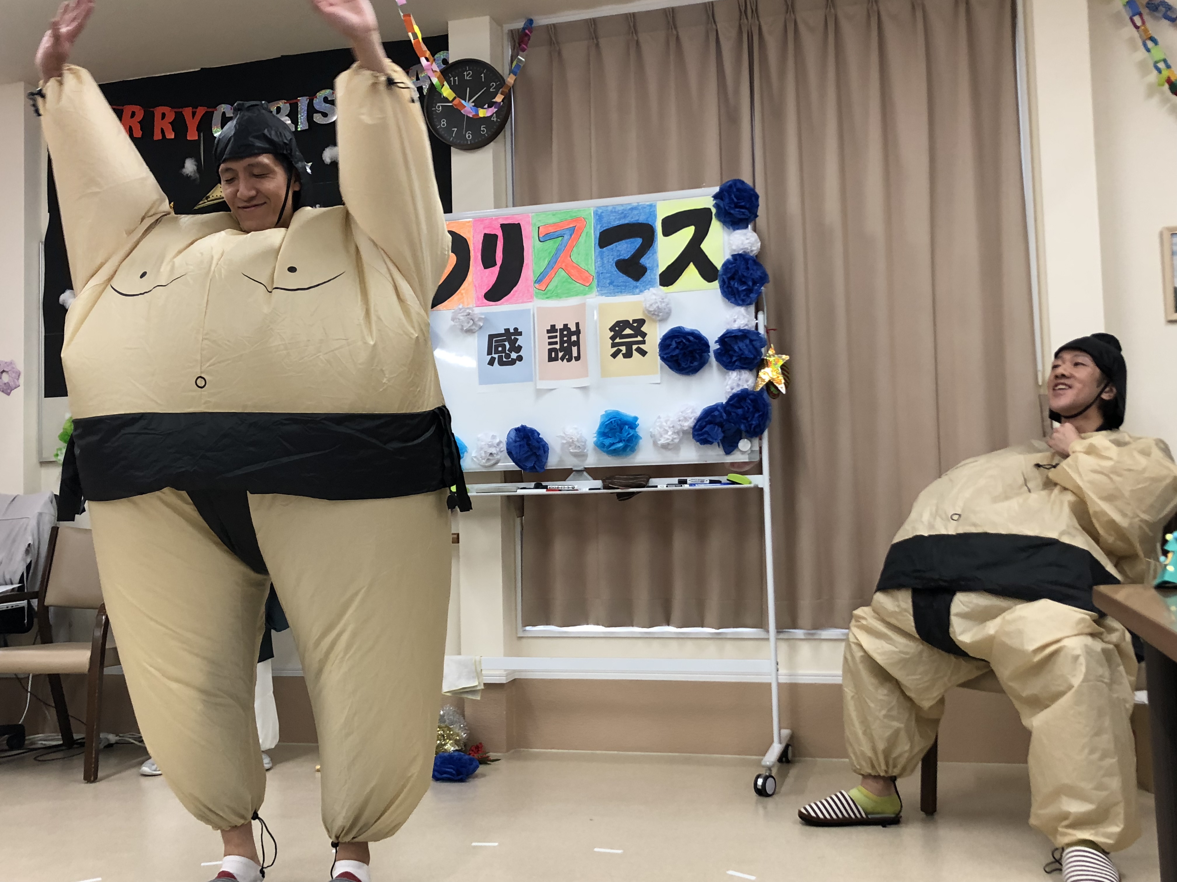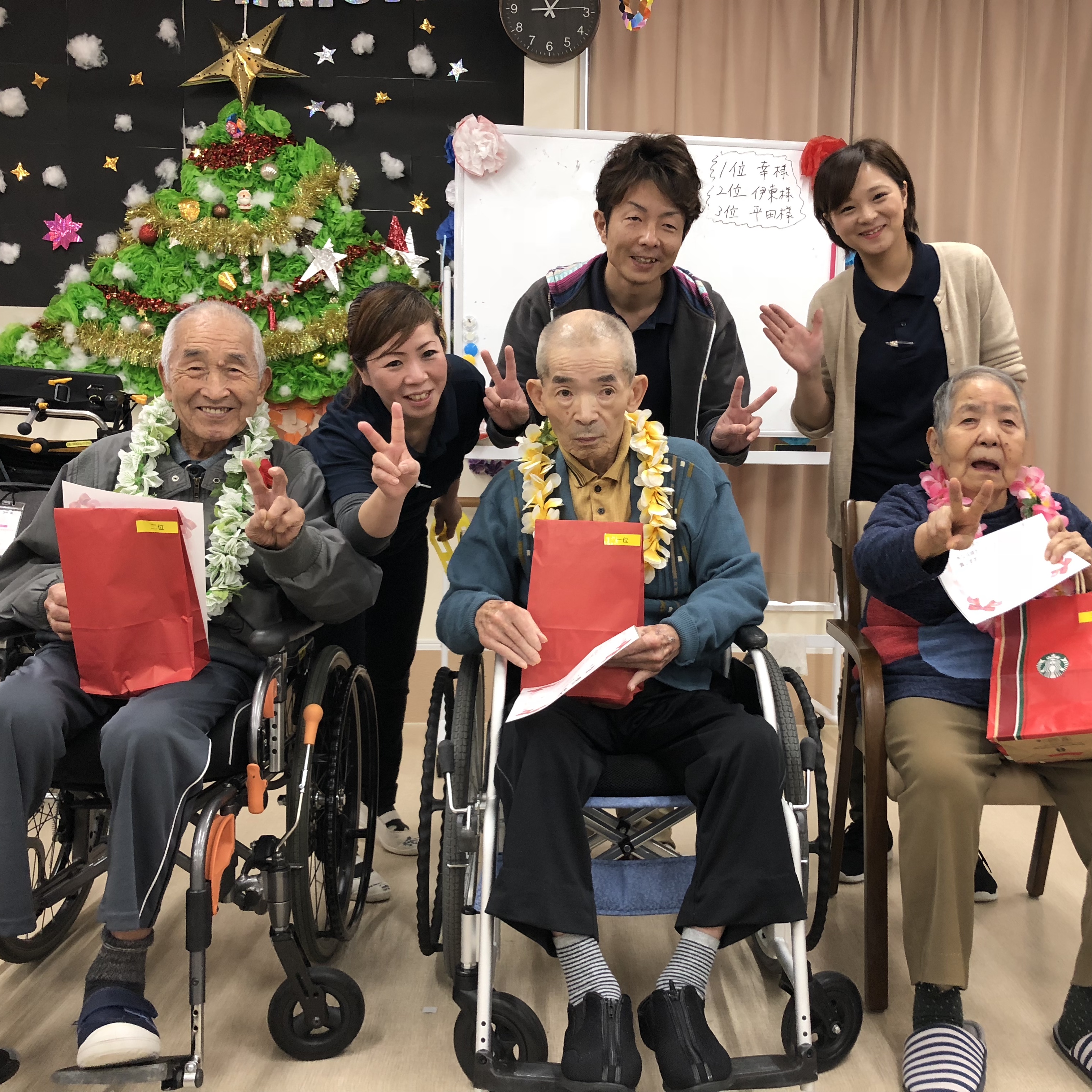 クリスマスということもあり、ツリーや、サンタも登場し、利用者様も職員も笑いが絶えませんでした!!