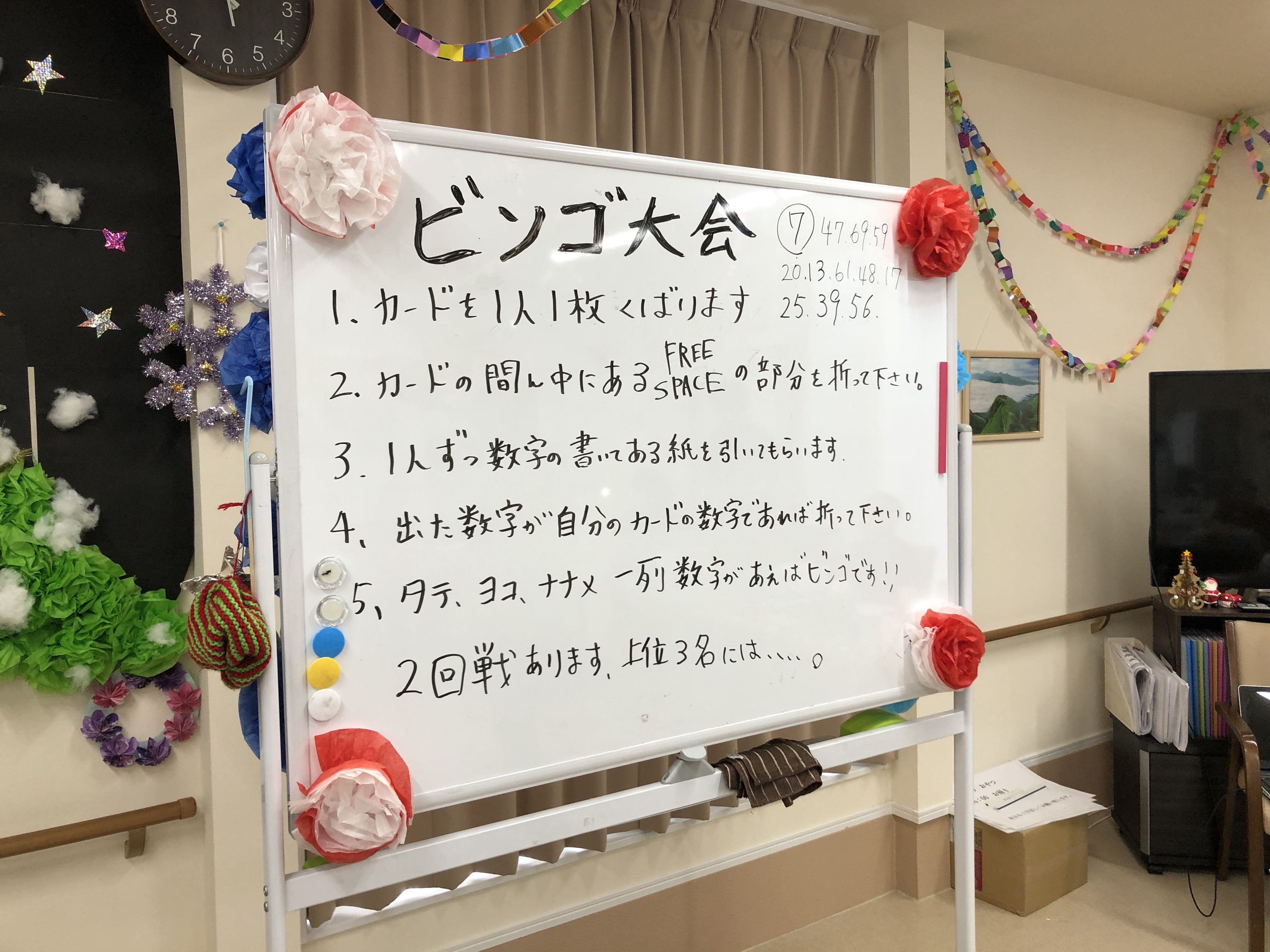 2回戦行ったのですが、どちらも ビンゴになった、利用者様がいました!皆さんにすごい!と言われていました♪