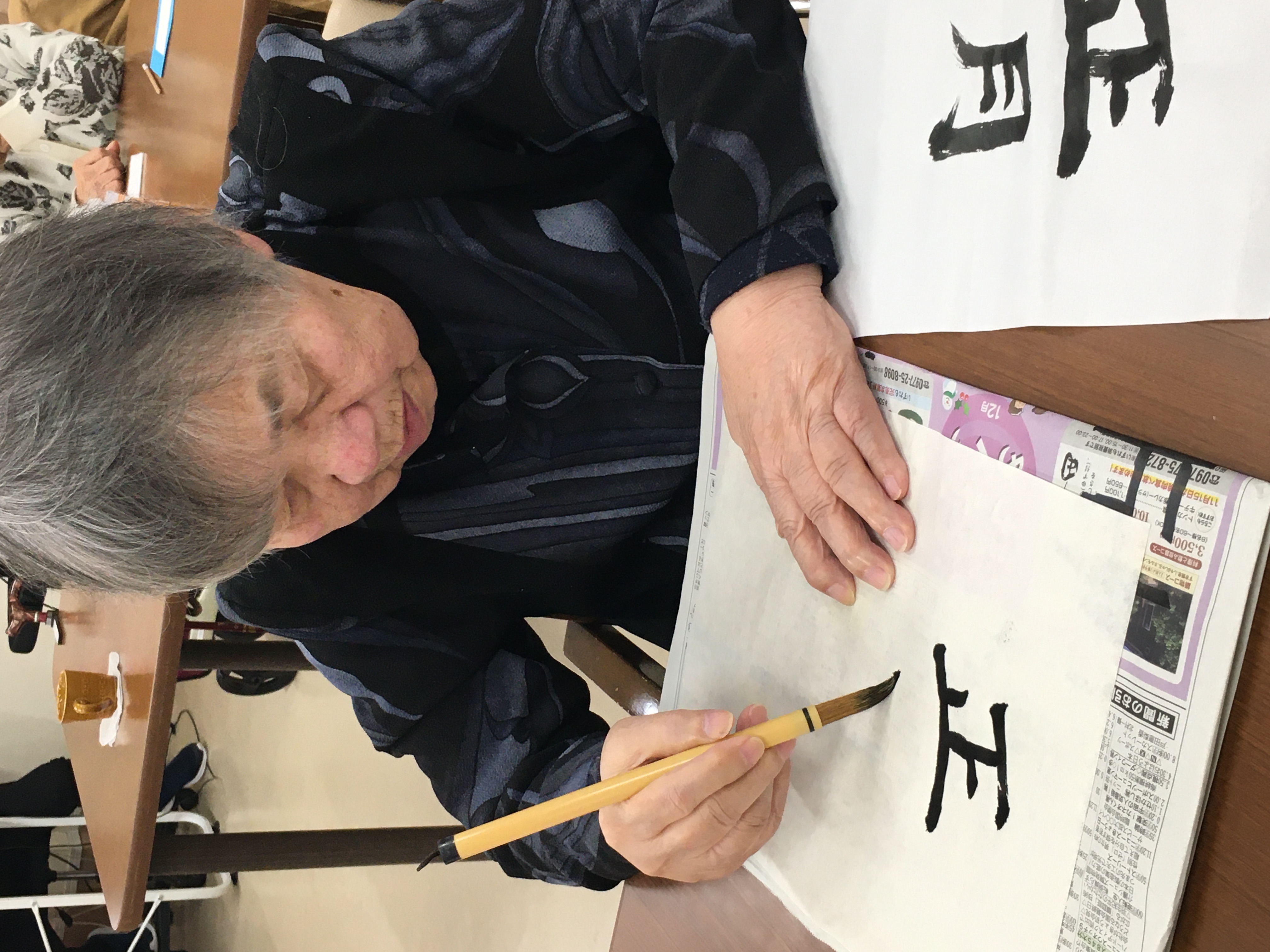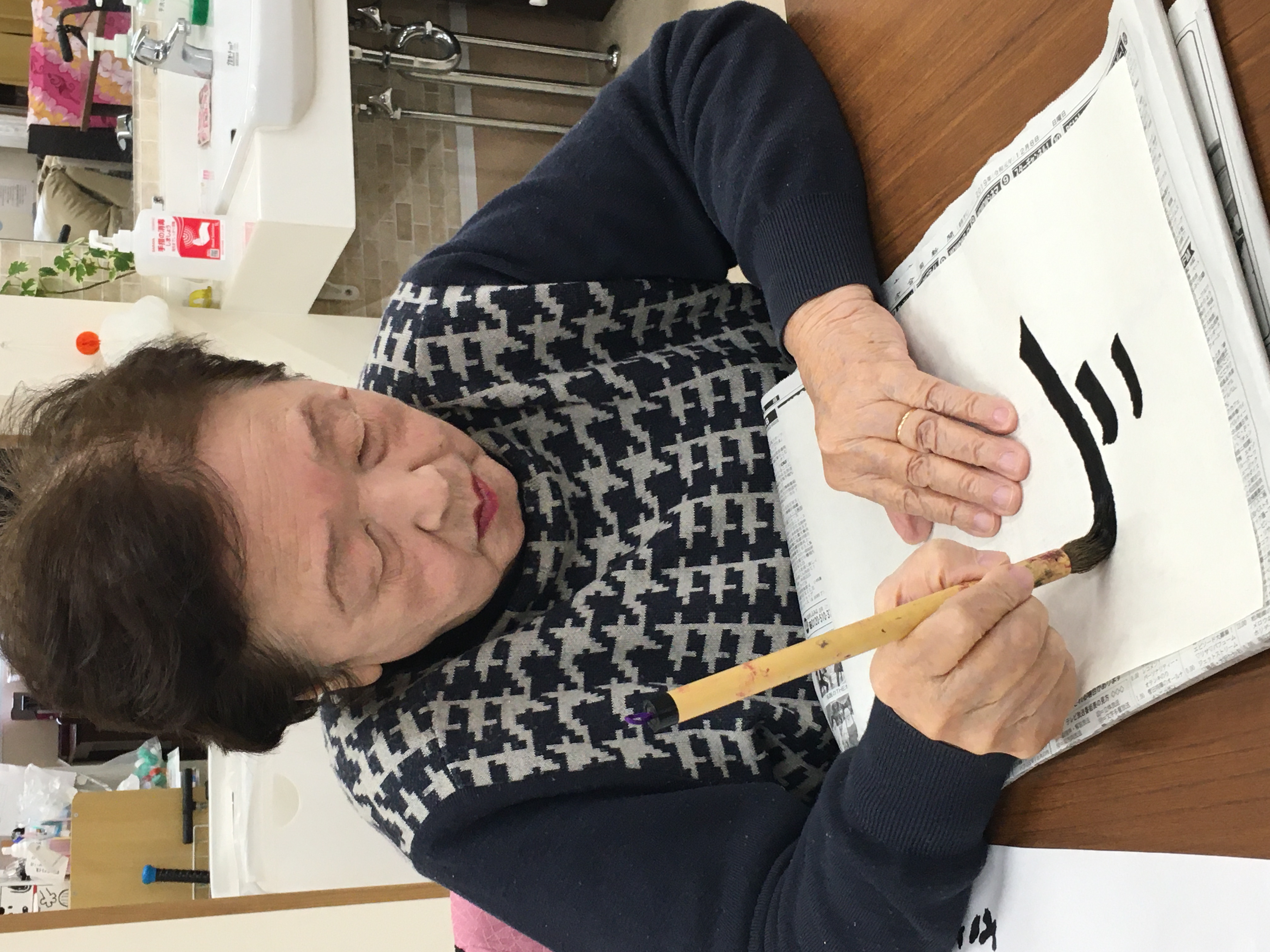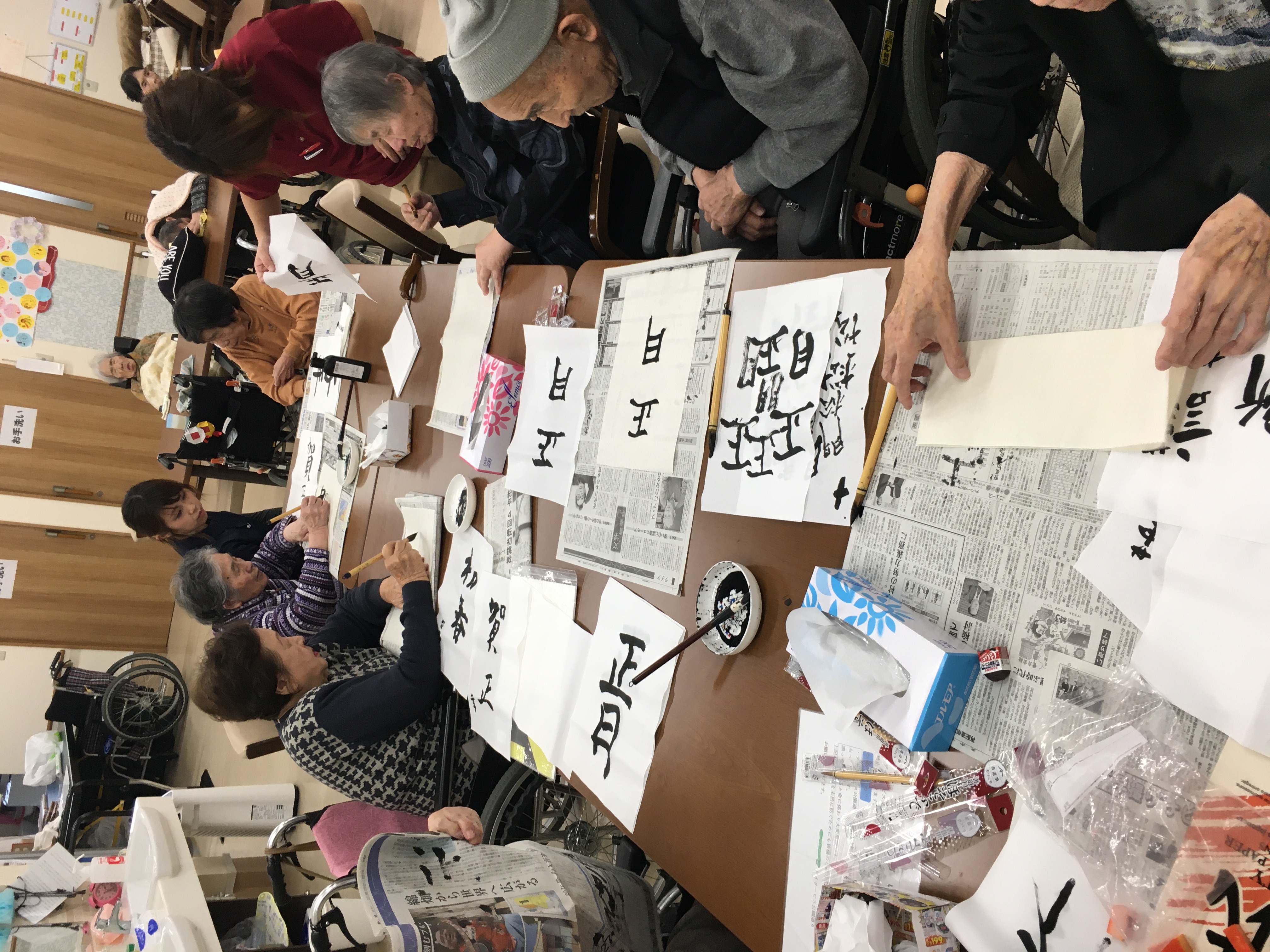 そして、書き初めもしました。久しぶりに筆を握り「手が震えるわぁ」など言いながらも、楽しんで書いていただけたようです。作品は玄関に飾りますので、みなさんよかったら見に来て下さいね😊