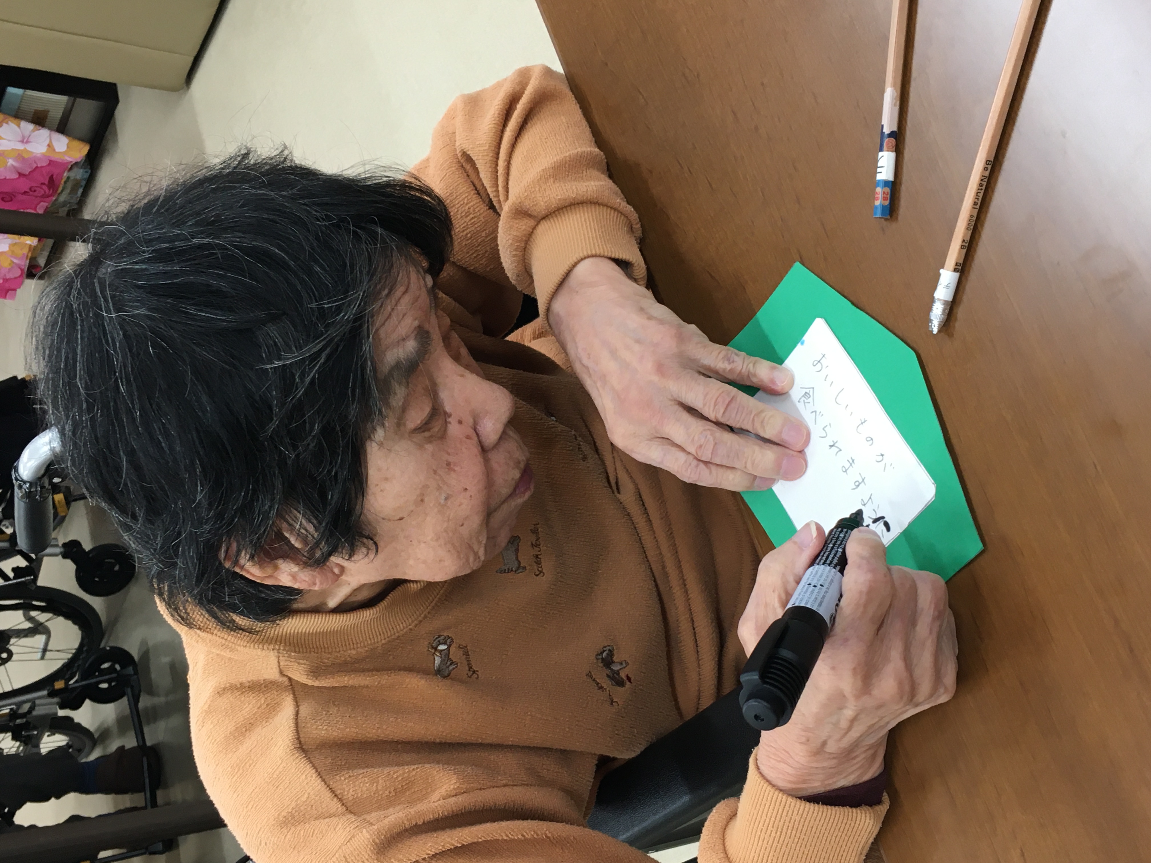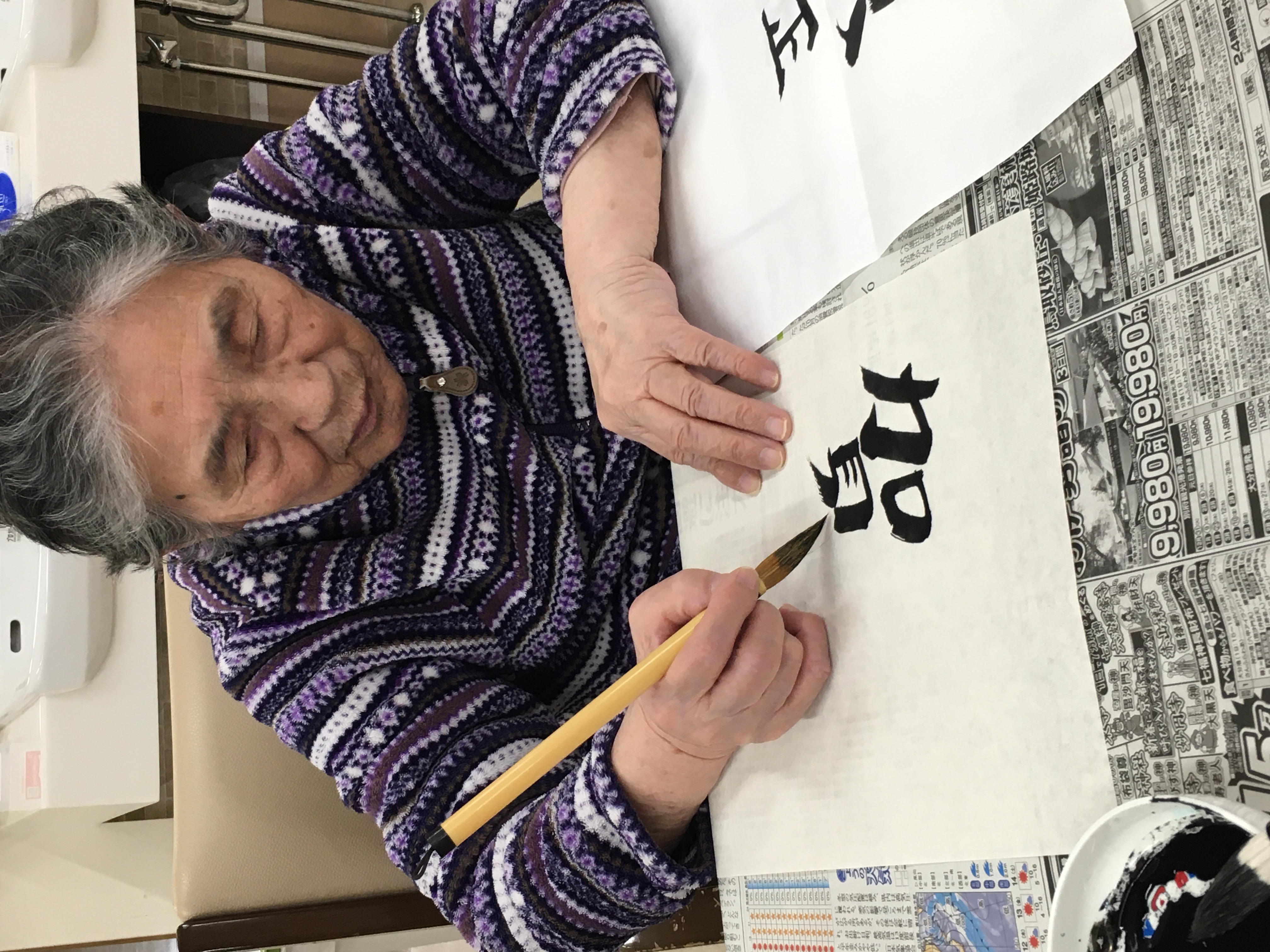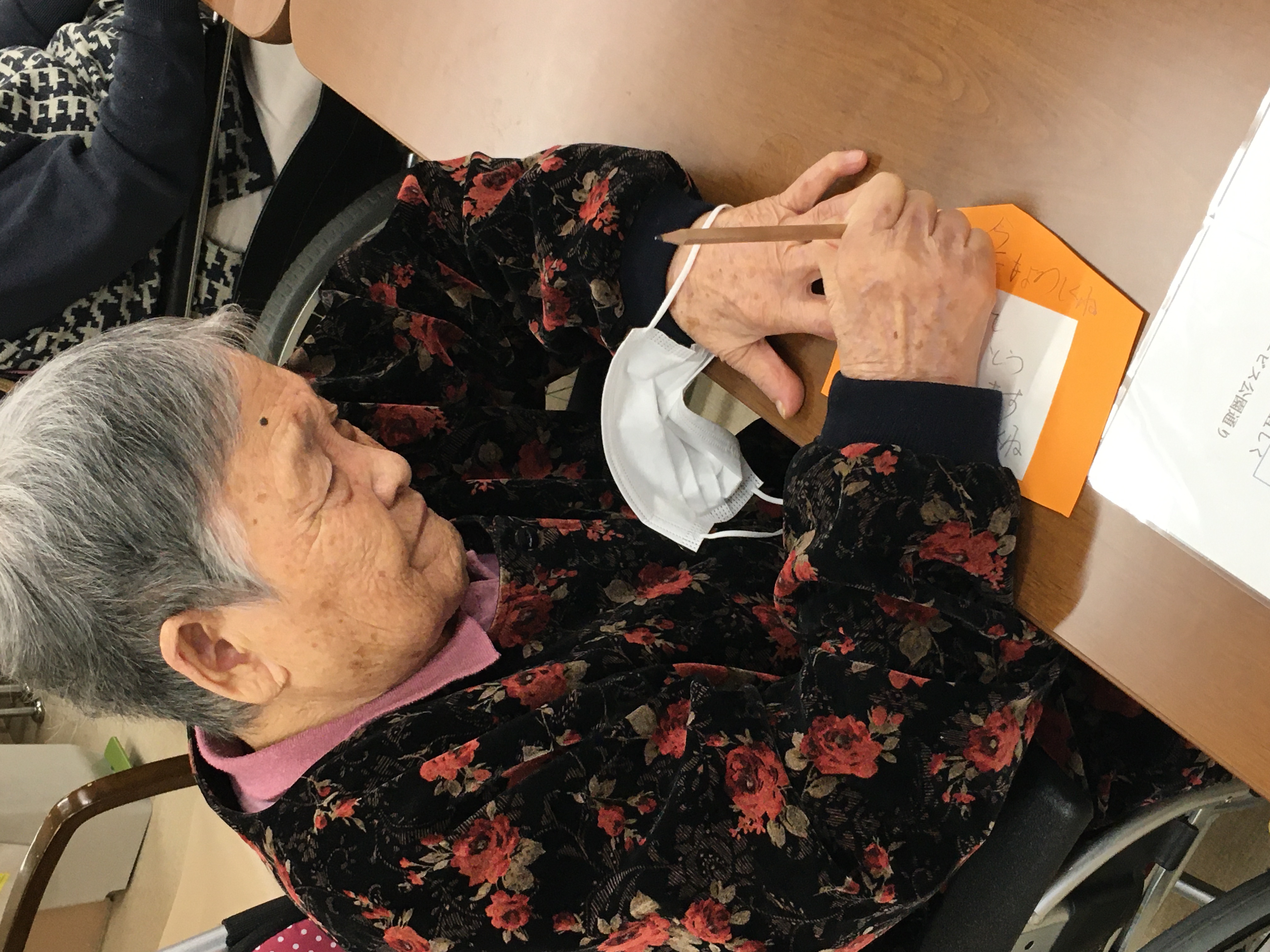 そして、書き初めもしました。久しぶりに筆を握り「手が震えるわぁ」など言いながらも、楽しんで書いていただけたようです。作品は玄関に飾りますので、みなさんよかったら見に来て下さいね😊