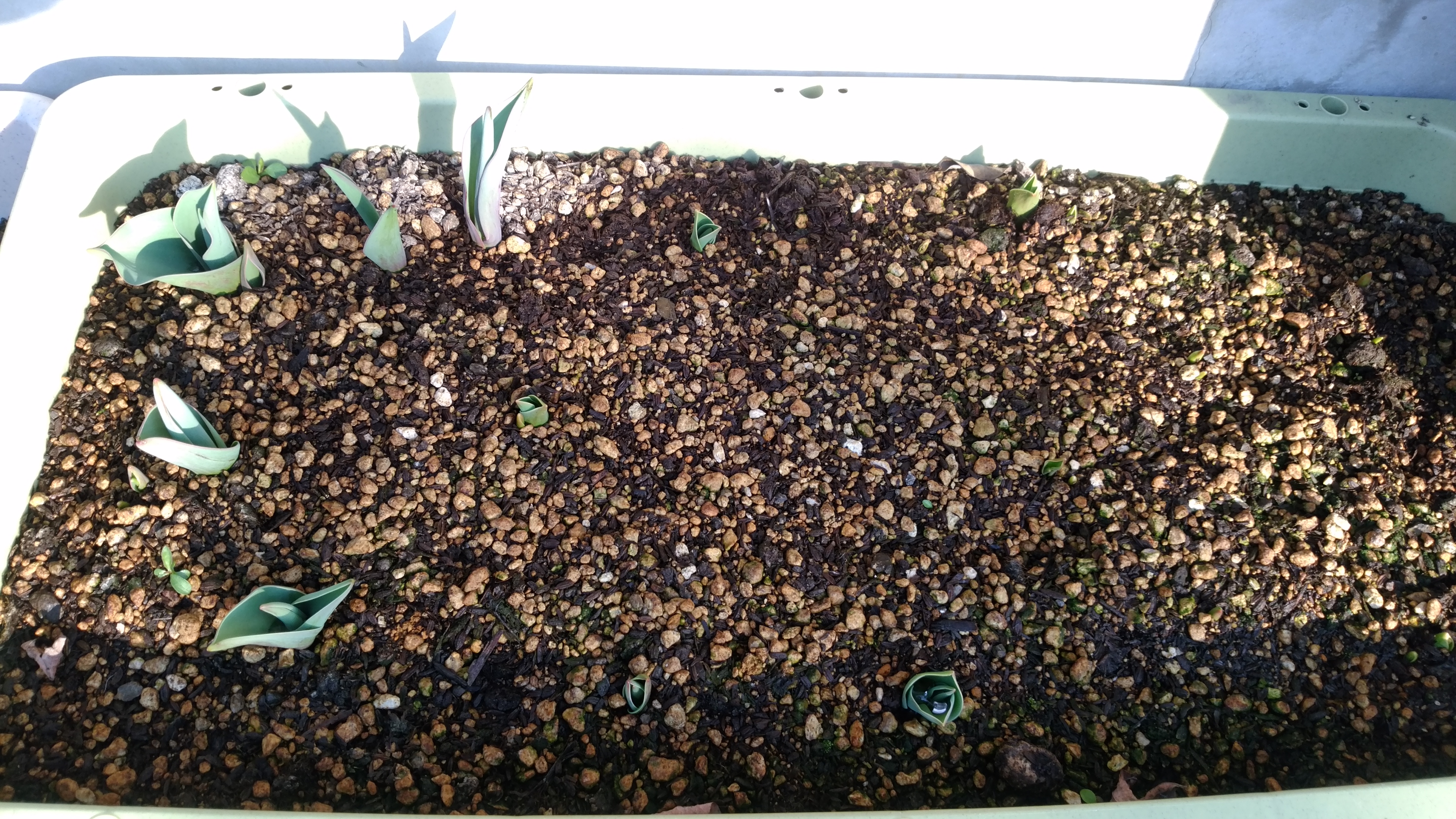 そして、チューリップはただいまこんな具合です。 1号プランター。