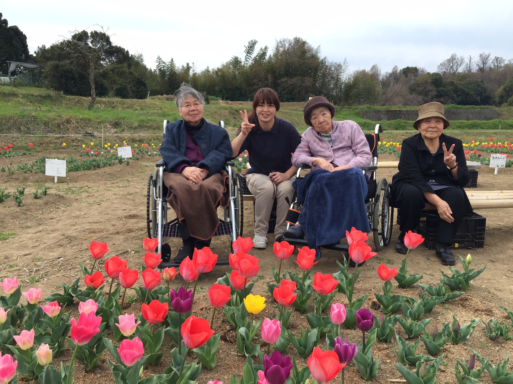 オシャレな利用者様 & 岡原公園チューリップ見学3日目♪