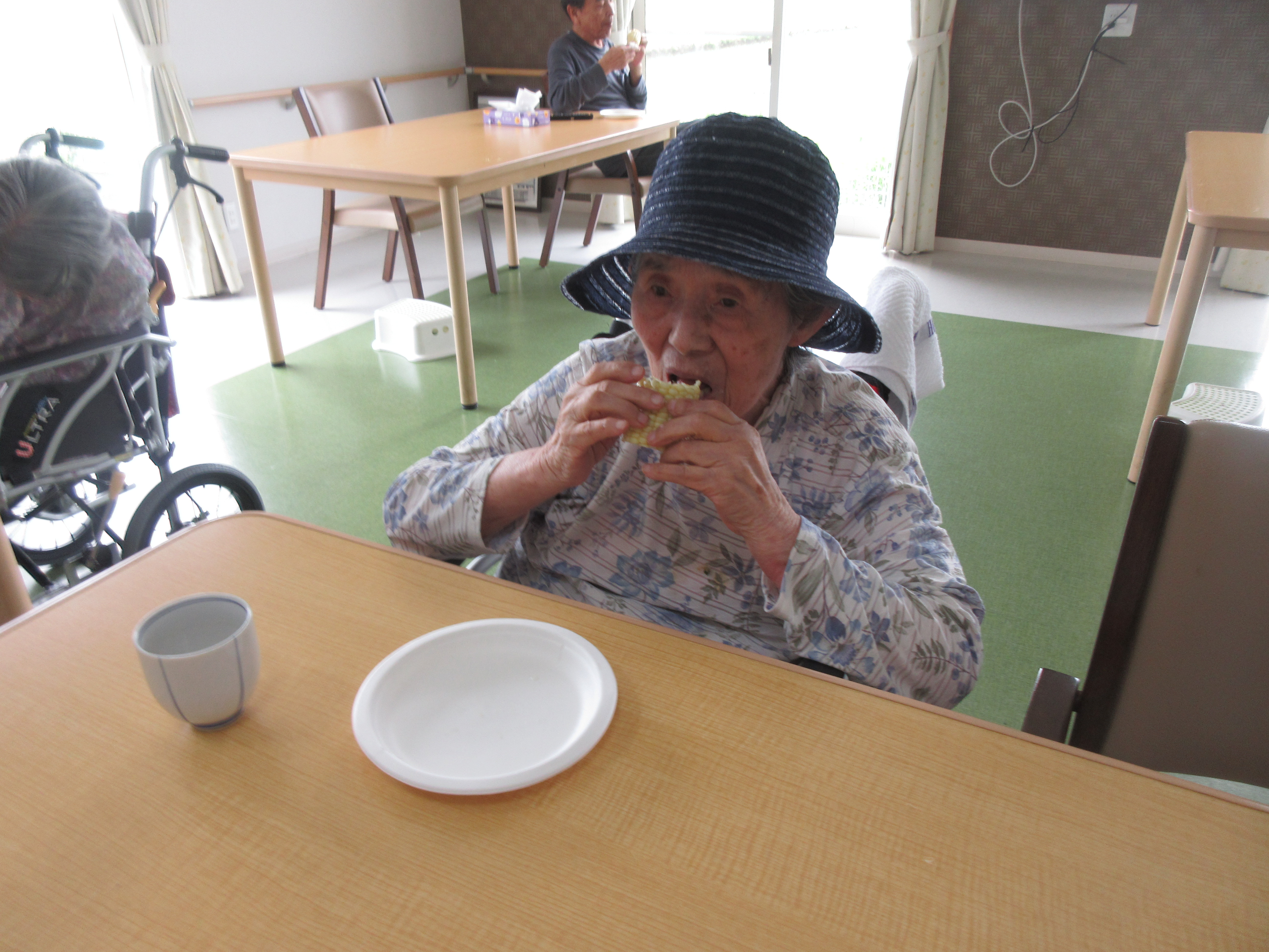 とうもろこし試食会を行っております。ホイップコーンという 白いとうもろこしや定番黄色とうもろこしのスイートコーン の試食会を行っております。利用者の方にはとうもろこしの皮向きをお手伝い頂き、 最近のとうもろこしは「実が詰…
